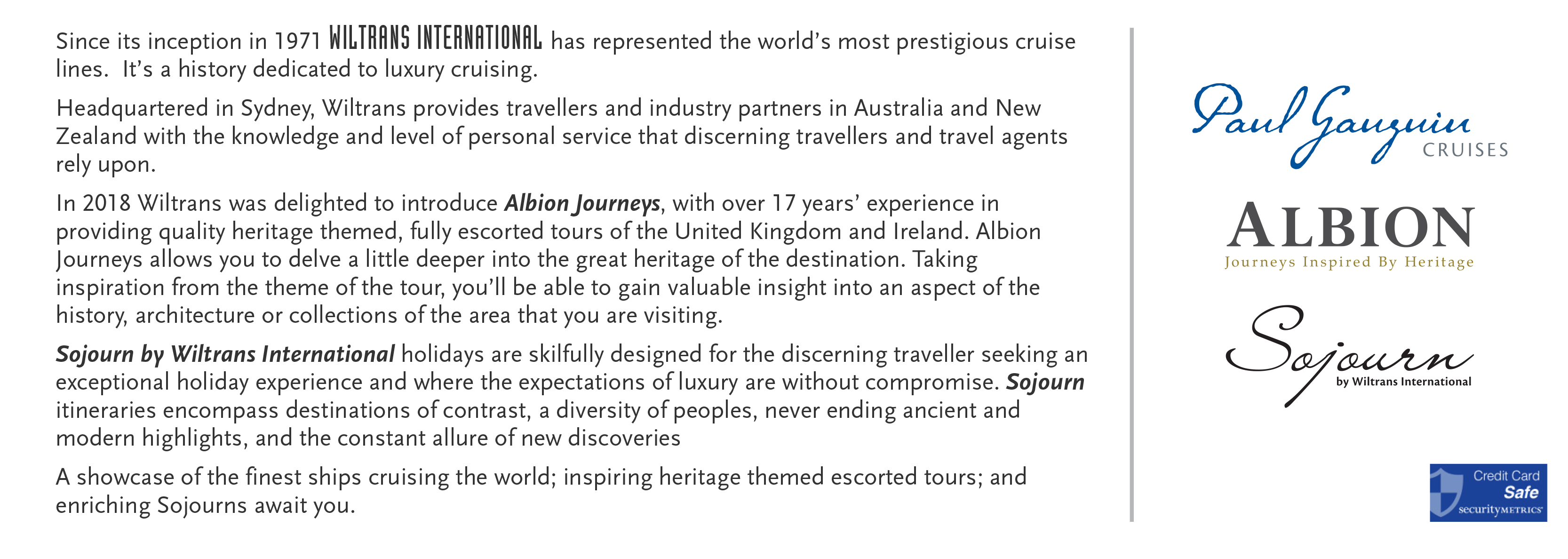 Paul Gauguin Cruises Albion Sojourn by Wiltrans International SecurityMetrics Credit Card Safe